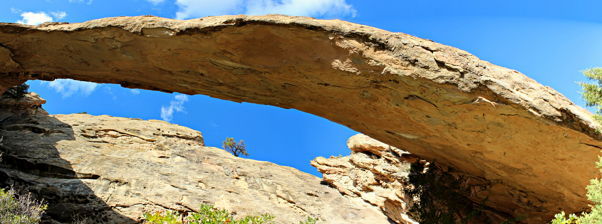 The 60 foot tall sandstone Arch spans 150 feet wide and is unique because it stands alone in the Grand Hogbacks.